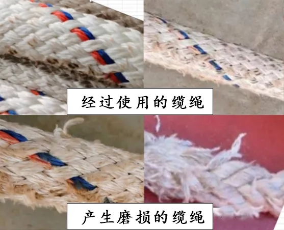 任何已經使用了一段時間的纜繩都會出現正常的磨損。在使用過的纜繩中,部分纜繩因其本身的產品特性就是強度高、耐磨性好,會比其他類型的纜繩磨損度輕。