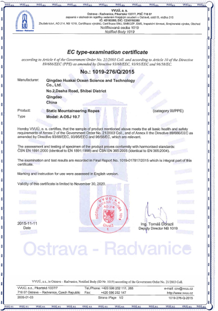 探洞繩(靜力繩)CE證書