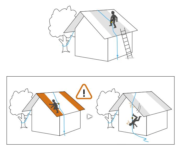 在這種環境下使用安全繩進行工作,滑倒和墜落的風險較高。必須安裝一個安全裝置以預防這些危險。