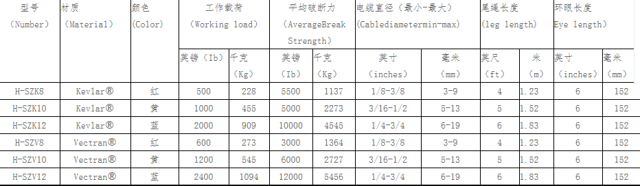 多種規格可供選擇,尾繩長度可根據需要進行延長,以適用各種直徑電纜,還可提供六爪繩,它可在電纜表面更加均勻地施加收縮力。